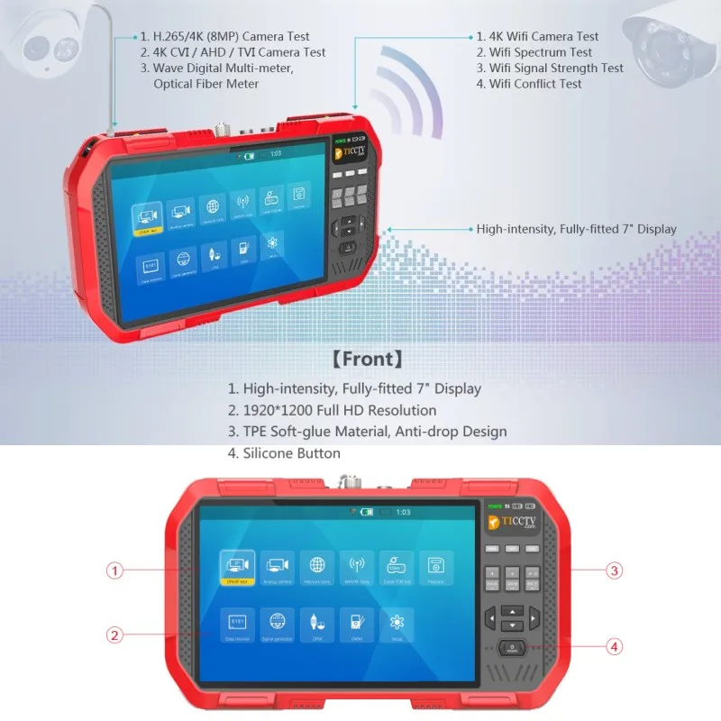 DT-A86 7 Inch H.265 4K Network HD IP TVI CVI AHD CVBS CCTV Camera Tester Monitor+TDR Cable Test+Mul