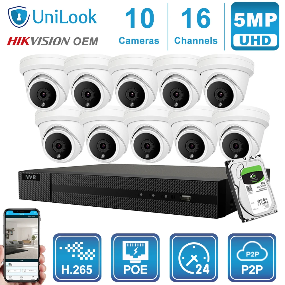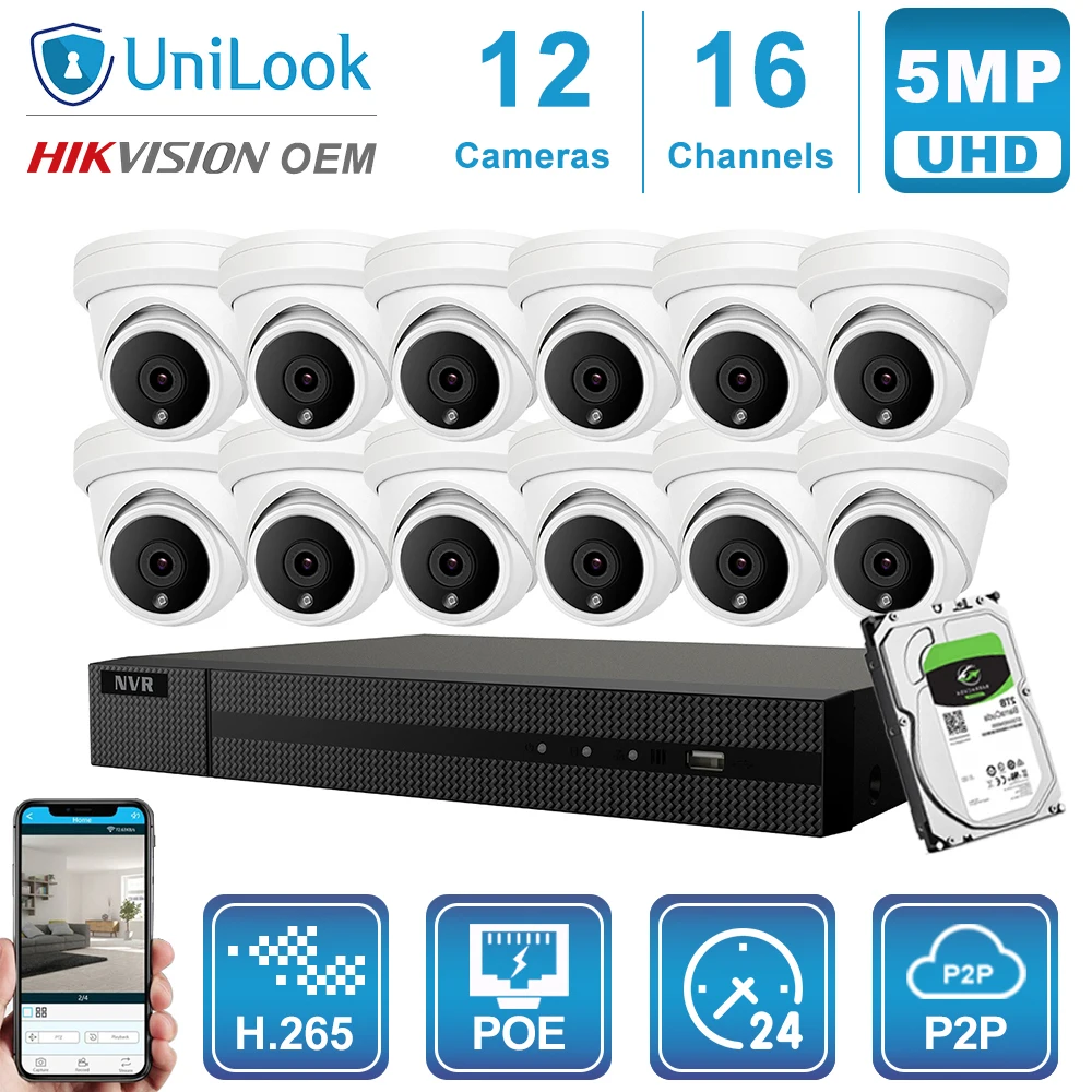 BEST Hikvision OEM 16CH 4K NVR 5MP Dome POE IP Camera 8/10/12/16PCS Outdoor Security ONVIF H.265 CCTV sy