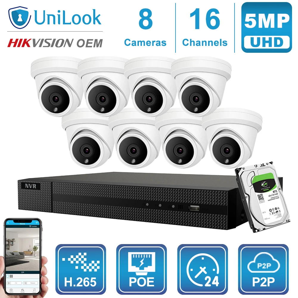 Hikvision OEM 16CH 4K NVR 5MP Dome POE IP Camera 8/10/12/16PCS Outdoor Security ONVIF H.265 CCTV sy