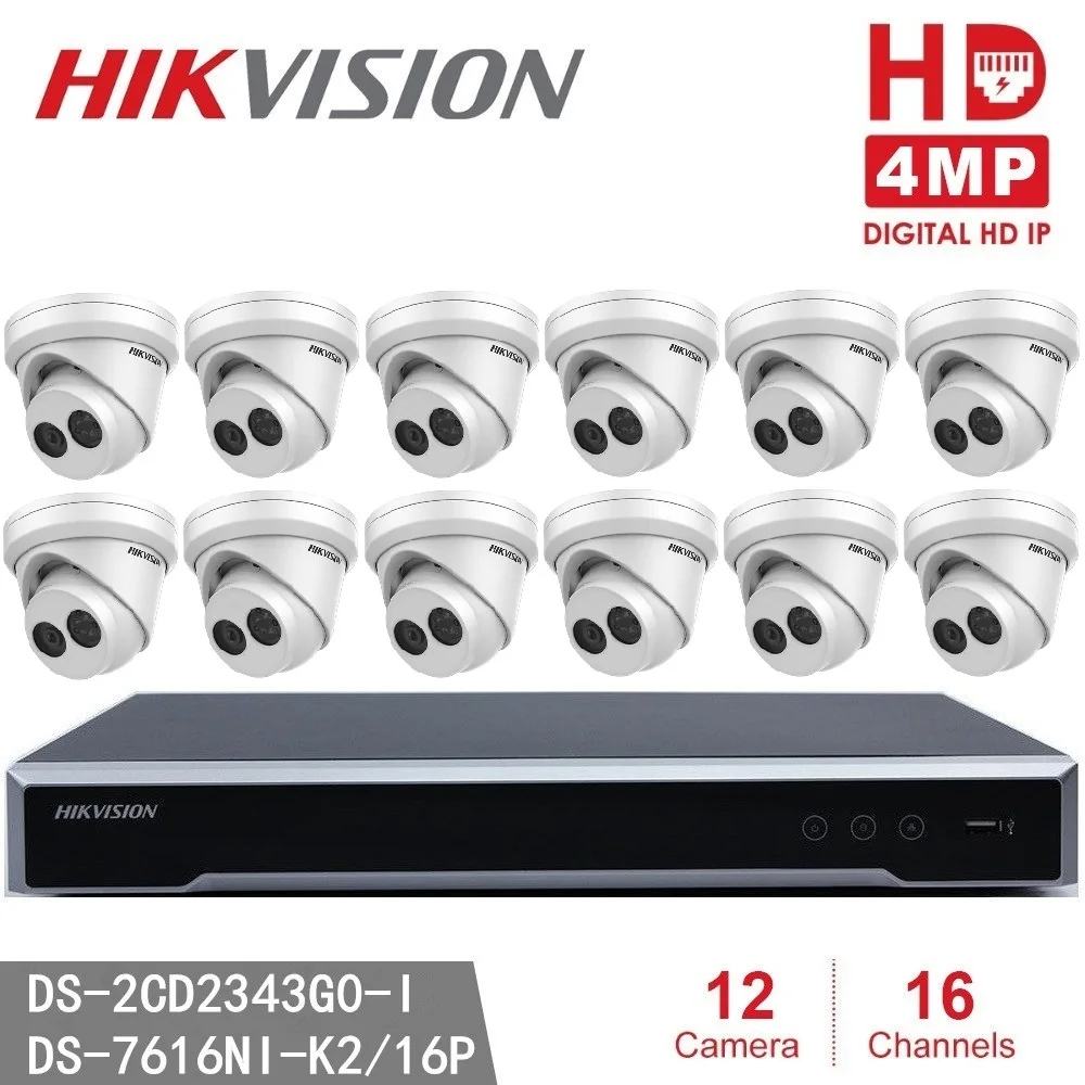 Best Hikvision Security Camera System NVR DS-7616NI-K2/16P 6MP Resolution + 12pcs DS-2CD2343G0-I 4MP EXI