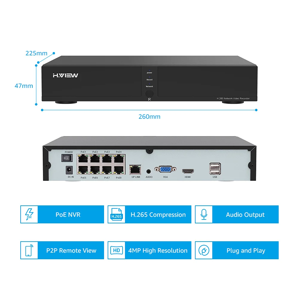 H.VIEW 8ch 400W CCTV Camera System PoE H.265 CCTV Camera System 4mp Surveillance Kit PoE 48V Survei