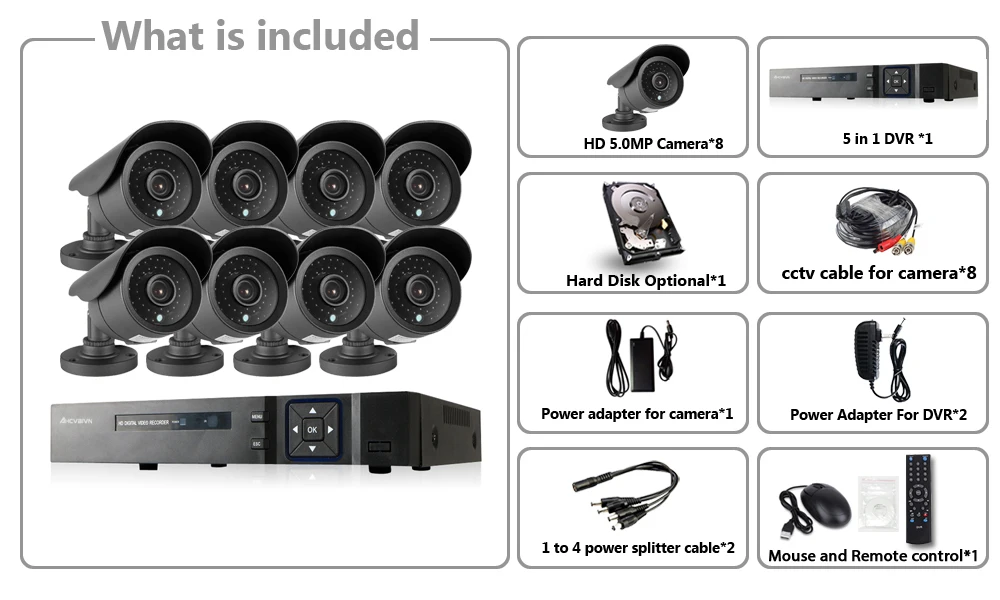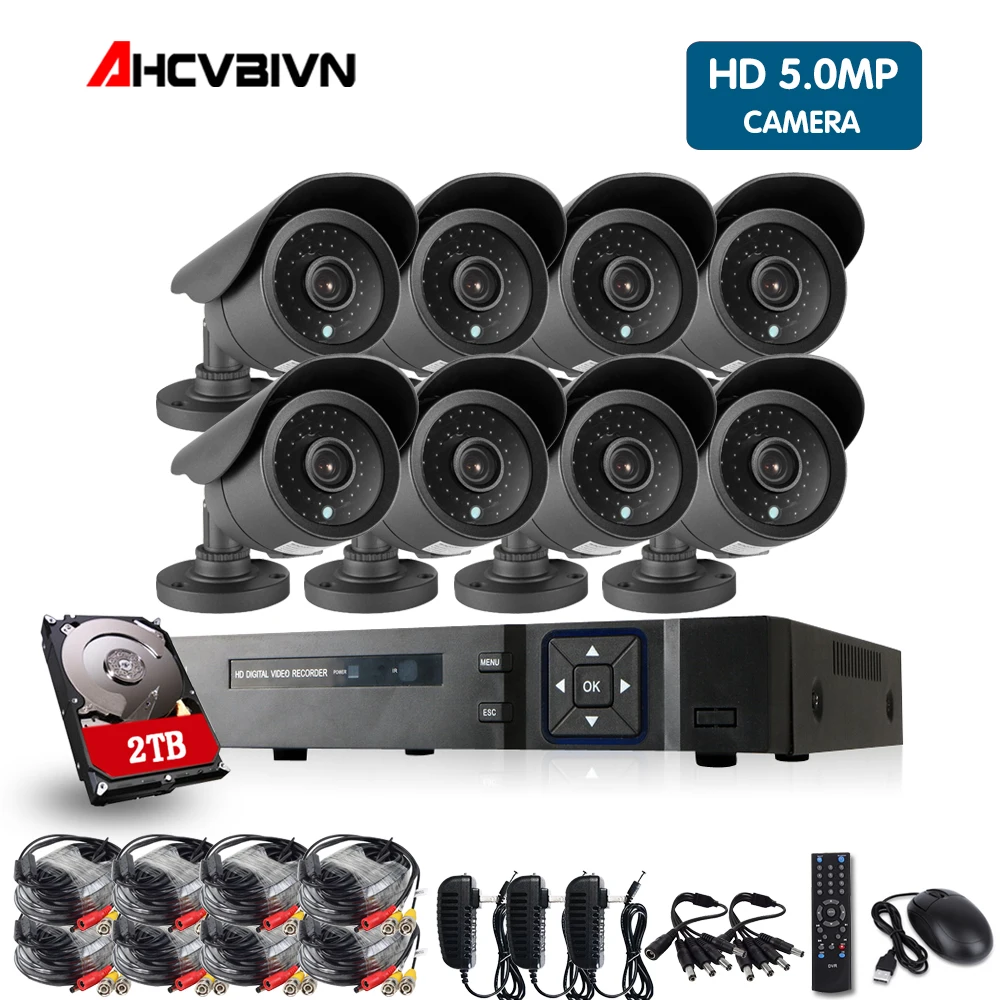 5MP CCTV System 8CH DVR kit 8pcs 5MP low illumination Camera Metal Waterproof Outdoor indoor AHD CC