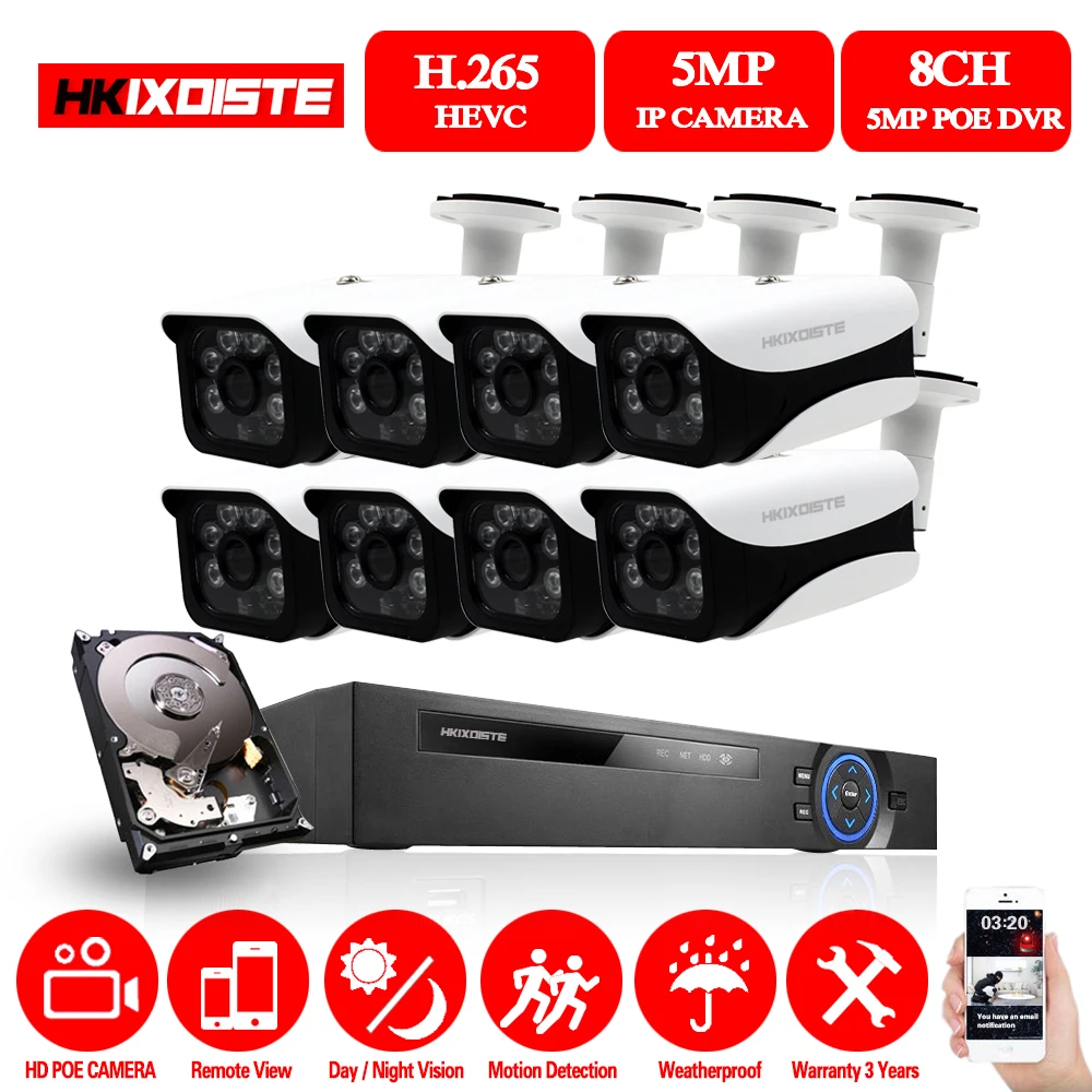 8CH 5MP HDMI POE NVR Kit Array CCTV Camera System 5MP Outdoor IP66 IP Camera P2P Video Security Sur