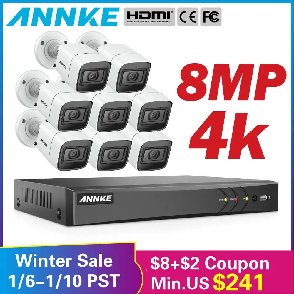 ANNKE 4K HD Ultra Clear 8CH Video Security System H.265+ DVR With 4X 8X 8MP IR Outdoor Weatherproof
