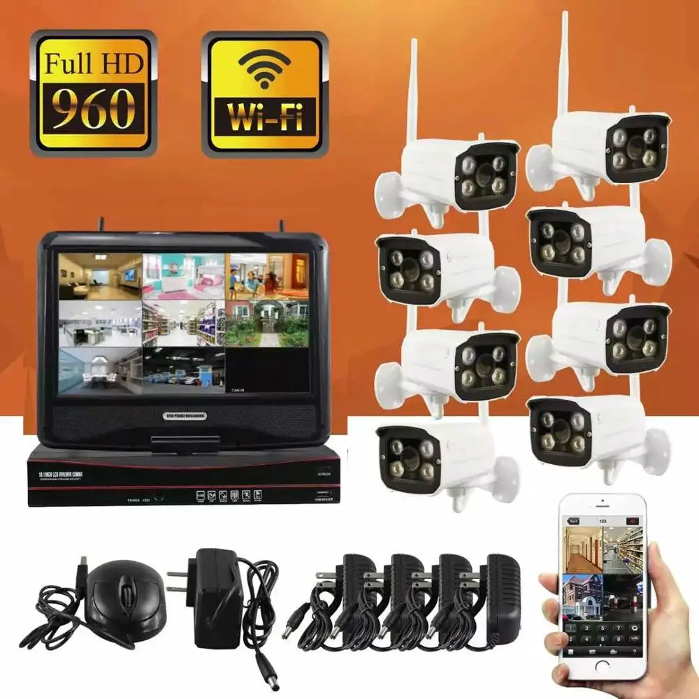 ORIGINAL SmartYIBA 10inch NVR 8CH Camera Kits 960P CCTV Camera Security System Wireless WIFI APP Remote Cont