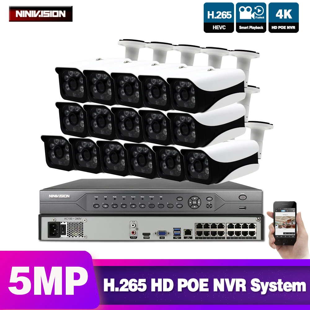H.265 16CH 5MP 8CH 4K POE NVR CCTV System 5MP 4MP 3MP 1080P Audio Record NVR Outdoor POE IP Camera