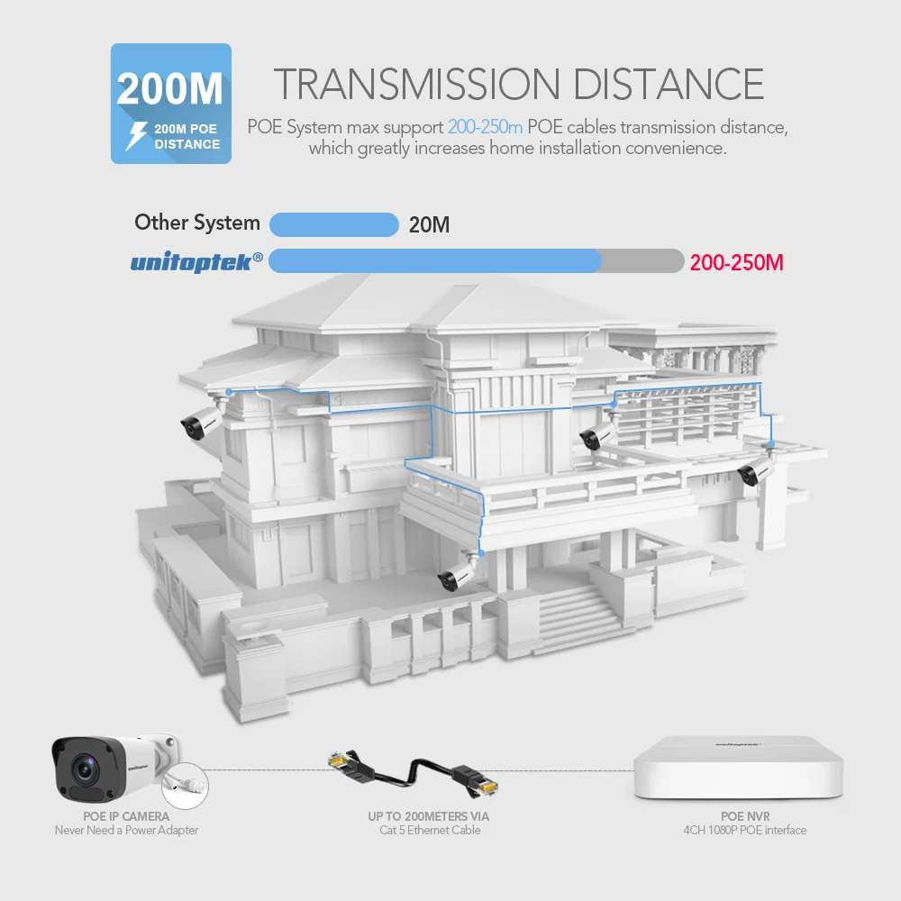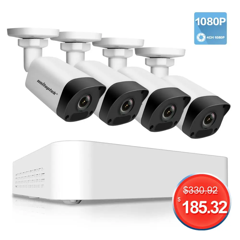 TOP 4CH POE CCTV NVR With H.265 HD 1080P IP Camera Max 200M POE Distance Outdoor Waterproof IP67 P2P CC