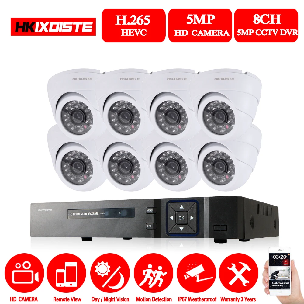 HOT Sale HKIXDISTE 5MP CCTV Surveillance Kit 5.0MP Security Camera System 8ch DVR 1944P Video Output Kit CCT