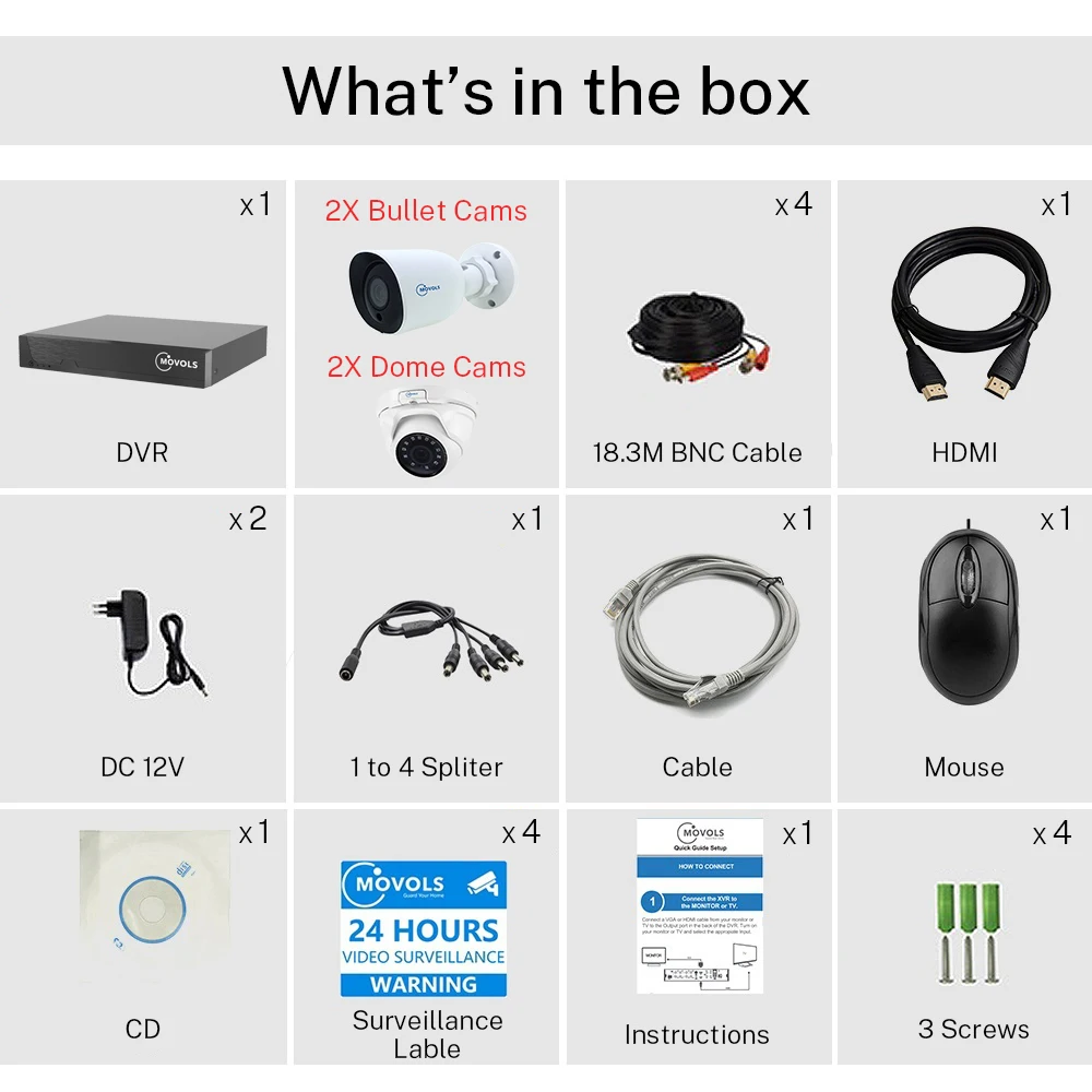 Movols 8CH H.265 5MP HD Video Surveillance Kit 2PCS Bullet 2PCS Dome Security Camera Home Outdoor W