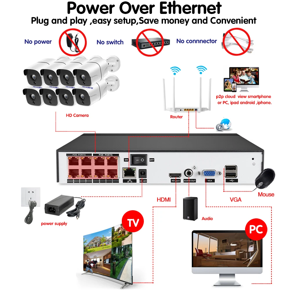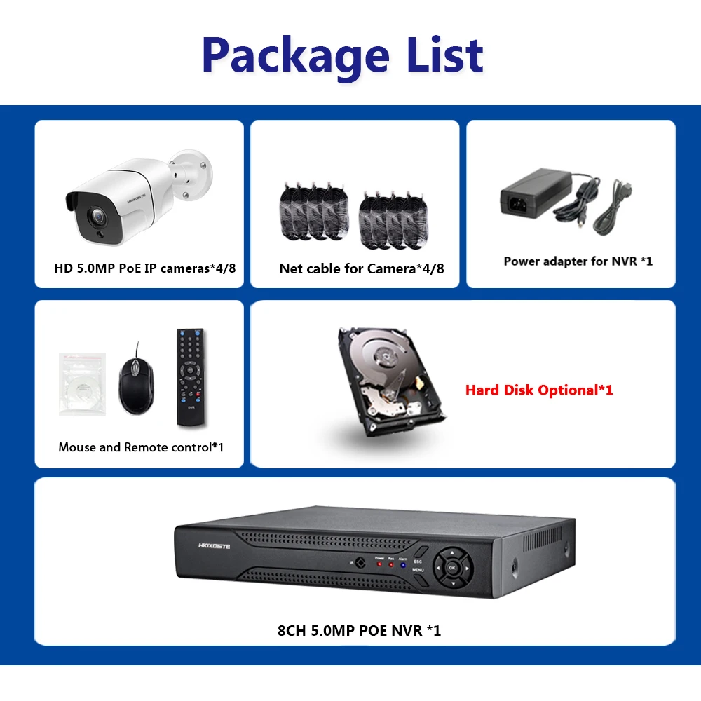 NVR 8CH 5MP CCTV Surveillance H.265+ System Kit 4 Or 8pcs 5MP POE IP Camera waterproof Night Vision