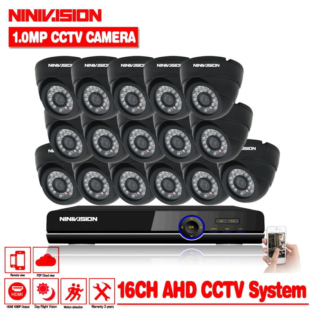 Review Top 16 channel AHD 1.0MP HD 720P security indoor camera CCTV System Kit 16ch Video Surveillance 1080P D