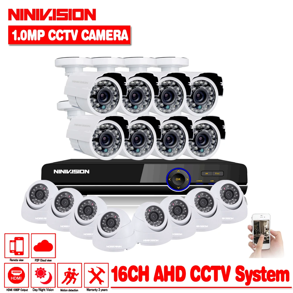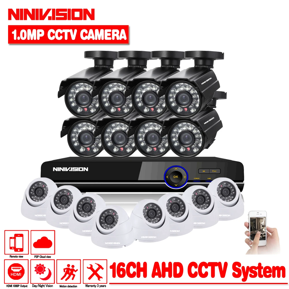 Best Home Security CCTV System 16CH 720P AHD CCTV DVR System HD 16PCS CCTV Cameras 1.0 Megapixels Enhanc