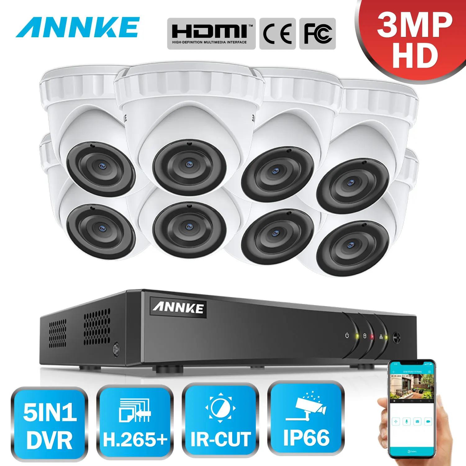 ANNKE 8CH HD 3MP CCTV Camera Security System 5in1 HDMI DVR 8PCS 3MP TVI Dome Outdoor Weatherproof H
