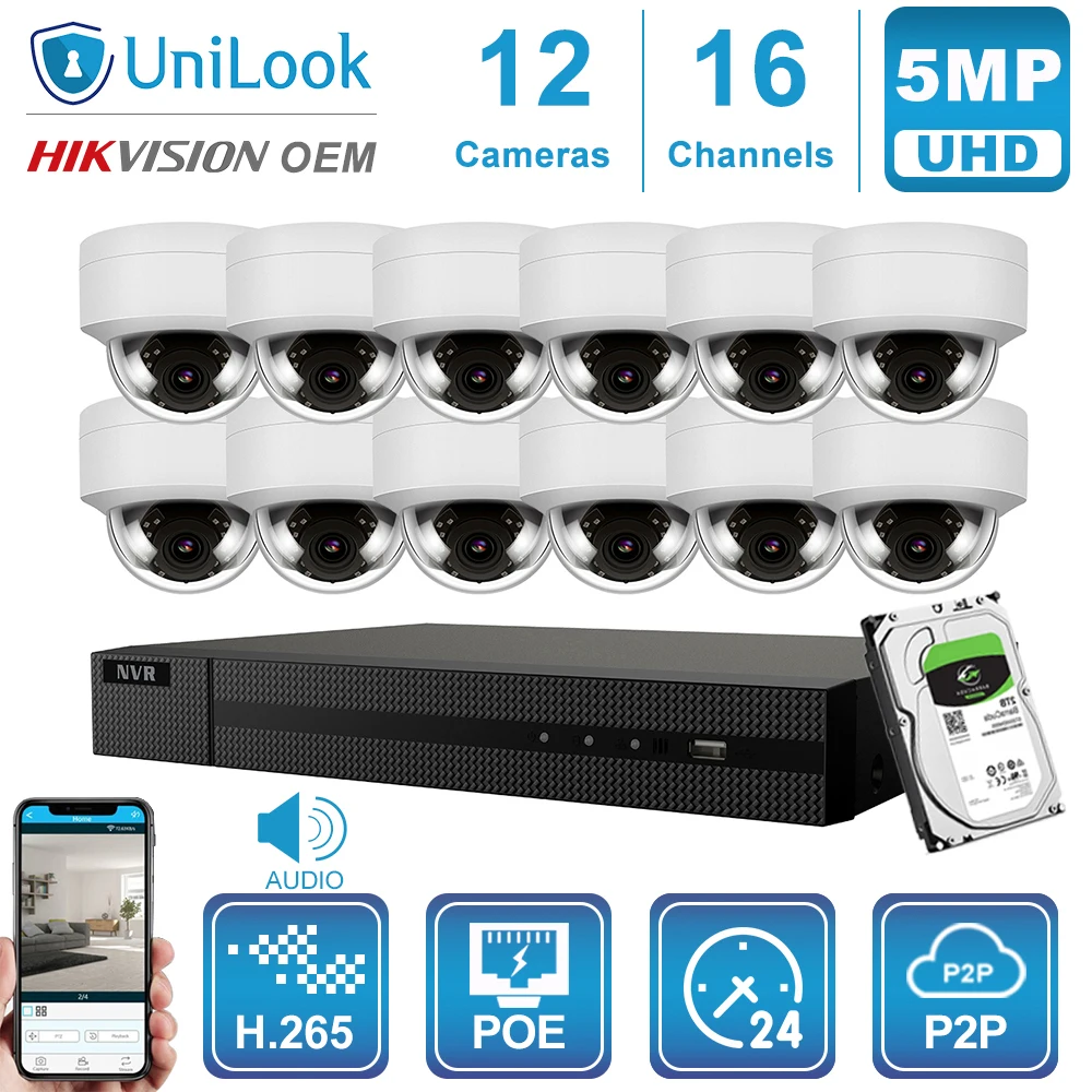 Hikvision OEM 16CH 4K NVR 5MP Dome Audio/4X Optical POE IP Camera 8/10/12/16PCS Outdoor Security Sy