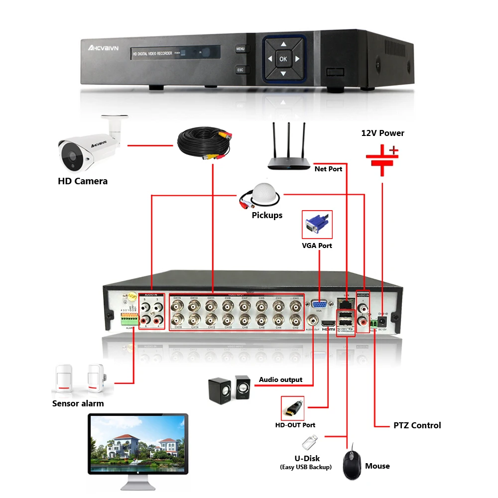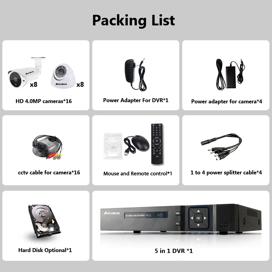 New 16CH 5.0MP AHD DVR CCTV System 4MP IR Night Vision Indoor Outdoor Camera Home Security Video Su