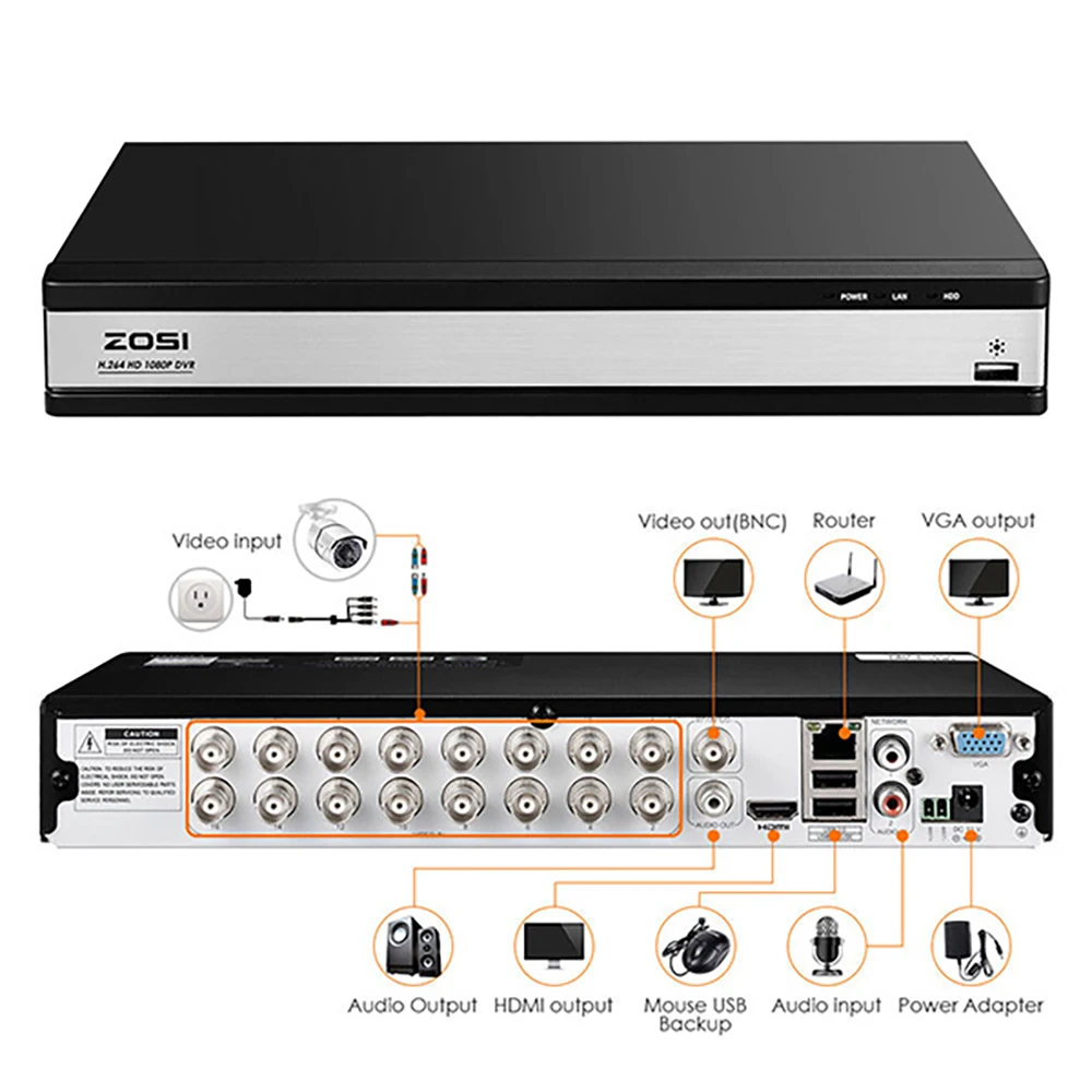 HIGH QUALITY ZOSI 1080P 16 Channel 4-in-1 AHD TVI CVI CVBS Hybrid CCTV DVR Boarder Recorder HDD BNC Connection R